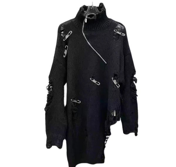 The Distressed Drama Turtleneck-Black
