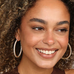We LOVE our simulated diamonds. At any size the Heiress Hoops are easy and classy to put on and layer for a chic look. But at 1”, they’re the perfect blend of playful and elegant. Seriously, you’ll never want to take these off.