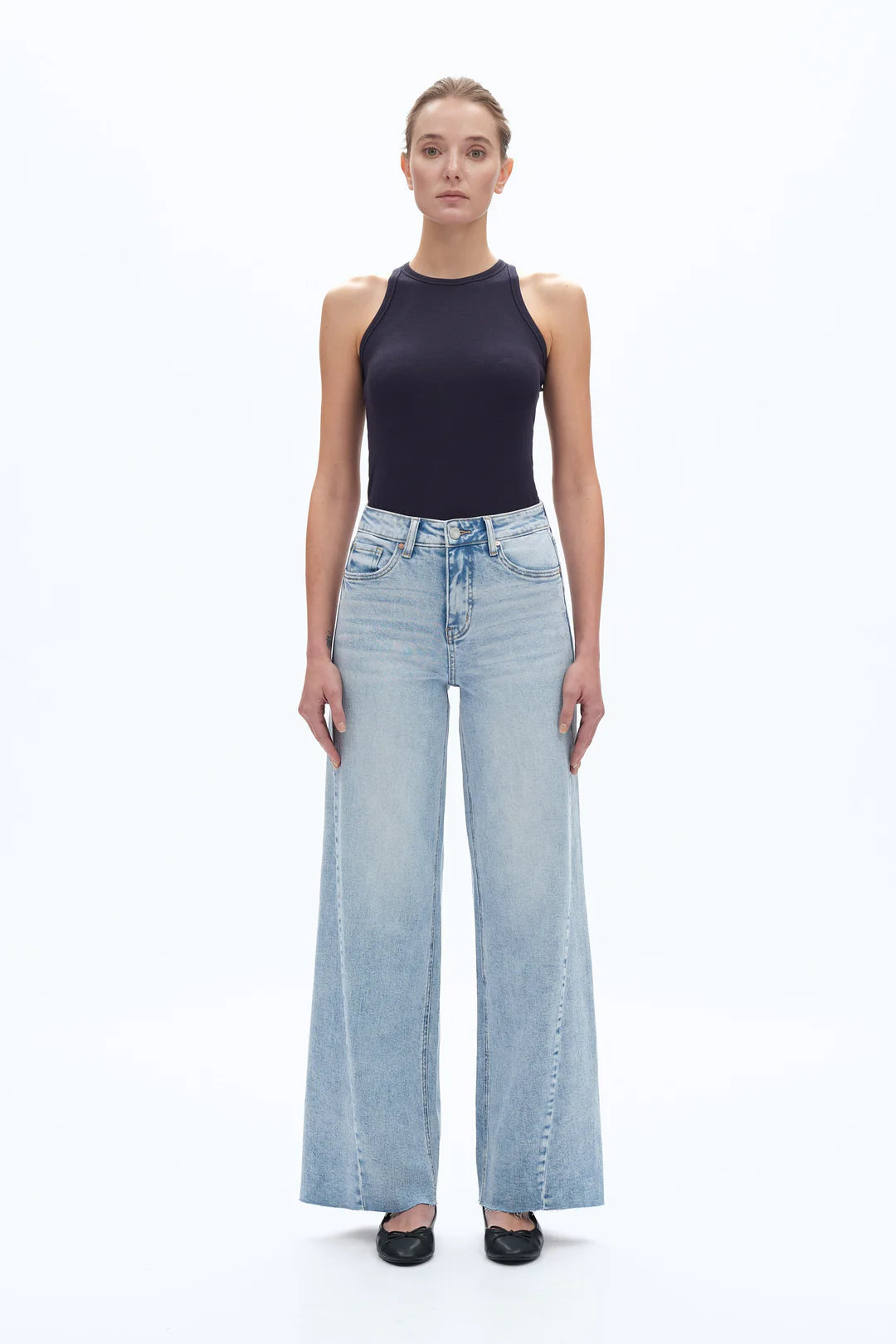 These high rise wide leg denim jeans offer a bold and flattering silhouette, combining vintage-inspired style with modern comfort. The high-rise waist provides a slimming effect, while the wide leg design gives you a relaxed, breezy fit. Made from durable yet soft denim, these jeans are perfect for dressing up or down. Pair them with a tucked-in blouse or a casual tee for a chic, effortless look that’s both trendy and timeless.