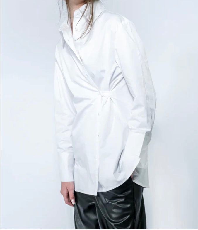 Versatility meets sophistication in the It's A Wrap Button Down Shirt, crafted from crisp, breathable cotton. This shirt features a unique wrap design that can be styled both as an oversized, relaxed fit or cinched with its wrap feature for a more tailored look. The classic button-down front adds timeless elegance, while the high quality cotton ensures comfort and durability. 100% Cotton