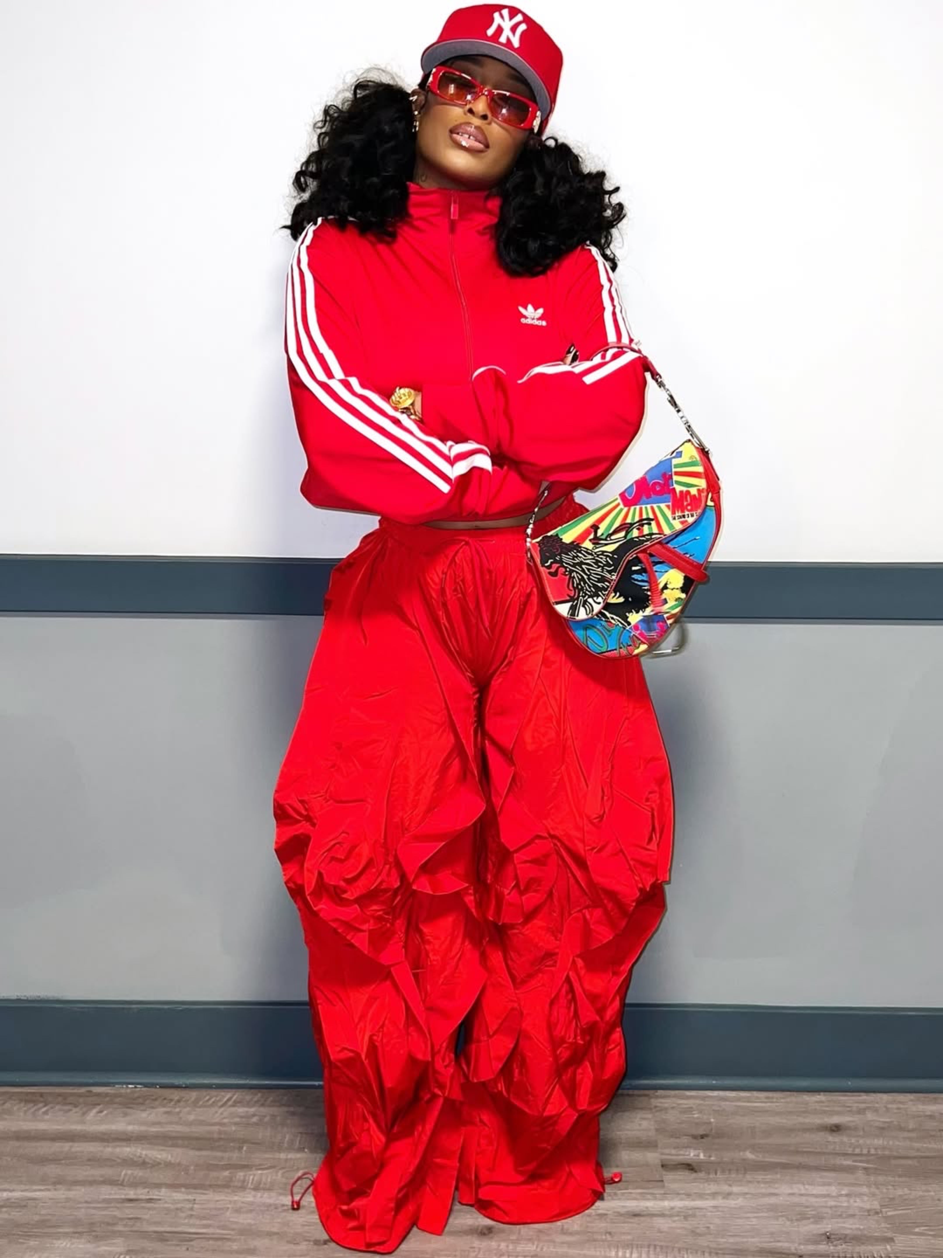Wavy Oversized Wide Leg Ruffle Drawstring Elastic Waist Jogger Pants.