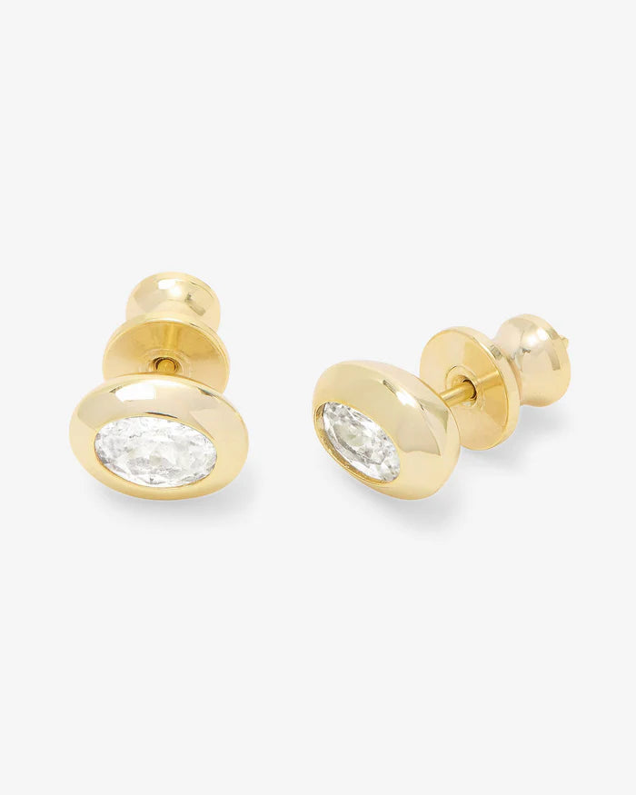Jewelry that means business. The She's a Boss Studs 6mm don't need to shout. Bezel-set simulated oval-shaped diamonds command attention and let everyone know you're the one calling the shots.