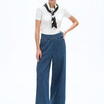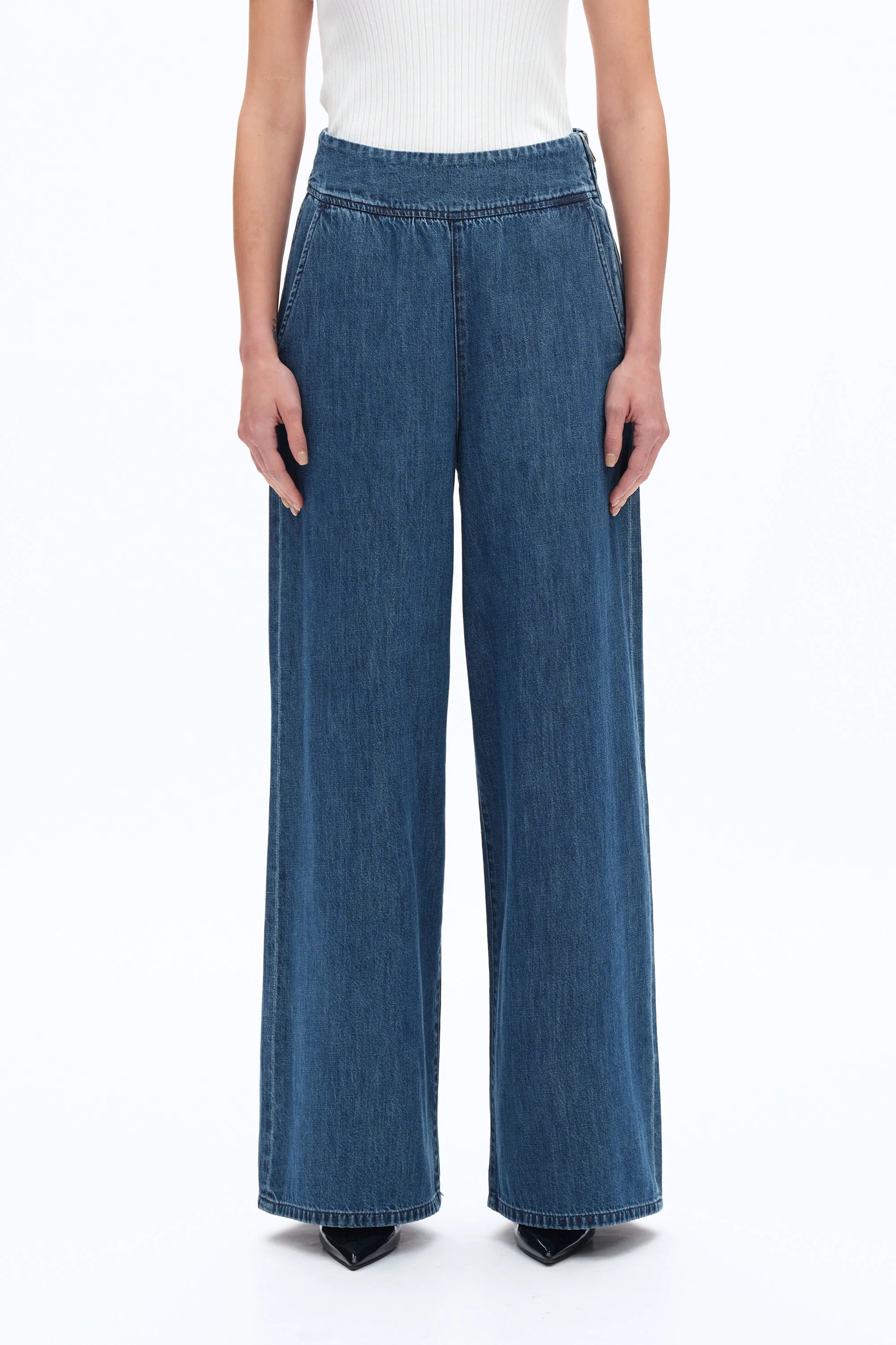 Relaxed yet refined these high-rise, wide-leg jeans are designed for the woman who loves comfort without compromising style. The structured silhouette elongates the leg, while soft denim fabric makes them perfect for everyday wear or a dressed-up moment.